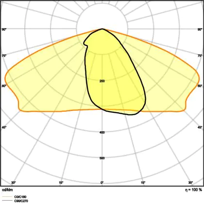 L'alloggiamento impermeabile di questa sorgente luminosa non è l'unica ragione per cui è perfetta per l'uso all'aperto. Infatti bisogna considerare anche la distribuzione della luce di questa lampada stradale, che ha apertura del fascio luminoso di 25x145° ed emette luce di colore 4000K - Bianco Freddo.