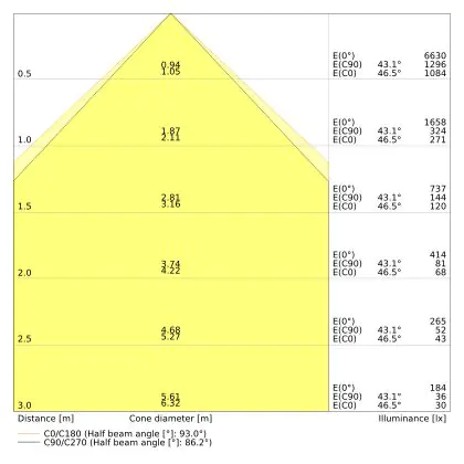 Il codice colore è una combinazione di resa cromatica (CRI) e colore della luce (Kelvin). La prima cifra indica la resa cromatica (1 = resa del colore molto bassa, 9 = massima resa del colore), mentre la seconda e la terza si riferiscono al colore della luce. Esempio: il codice colore 830 indica una buona resa cromatica (8) e luce bianca calda (3000K). |