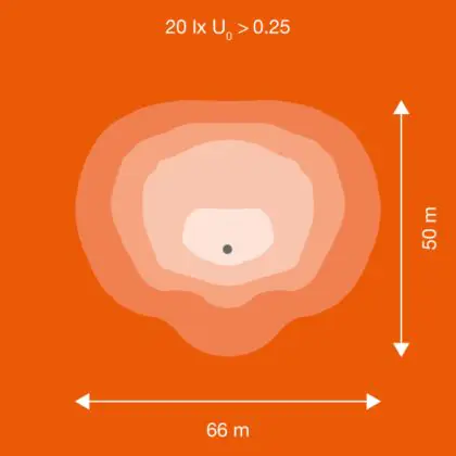 Questo apparecchio può essere usato sia in spazi interni che in spazi esterni, poiché ha indice di protezione contro l'ingresso di acqua e polvere IP66. In generale, un apparecchio con IP44 è resistente a schizzi di acqua e umidità, e può quindi essere installato in spazi esterni molto umidi o esterni riparati, come sono una tettoia. Un apparecchio che invece verrà esposto a intensi getti di acqua deve avere almeno IP54. Questa lampada ha anche un indice di resistenza a urti e impatti di IK08 - 5 Joule