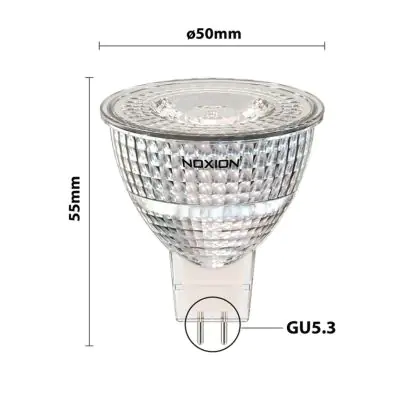 La Noxion Faretti LED GU5.3 MR16 6.1W 621lm 36D - 830 Luce Calda| Sostitutiva 50W è perfetta per la sostituzione della classica lamapda alogena50W GU5.3 con colore della luce 830 Luce Calda. Questa lampadina ha una forma Spot con un diametro di 50mm. La distanza tra I due pins è di 5.3mm. Queste lampade hanno bisogno di un trasformatore poiché operano a 12V. I trasformatori possono essere trovati in "Accessori" su questa pagina. Qual’è il trasformatore adatto? Dipende dal numero di lampade che si vuole installare. Il nostro servizio di vendita e assistenzati ti aiutera nella scelta. Passare a LED offre molti vantaggi!