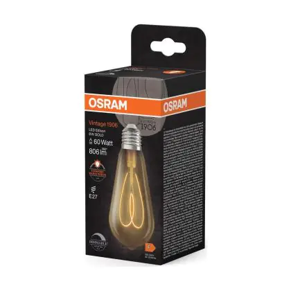 La Osram Vintage 1906 LED E27 Edison Filamento Oro 8W 806lm - 922 Bianco Molto Caldo | Miglior Resa Cromatica - Dimmerabile - Sostitutiva 60W è la perfetta sostituzione per la tua lampada convenzionale 60W con attacco E27 grazie alla sua tecnologia LED. Passare a LED ti offrirà tanti vantaggi!