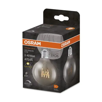 La Osram Vintage 1906 LED E27 Globe Filamento Chiara Slim 4.8W 470lm - 827 Bianco Molto Caldo | Dimmerabile - Sostitutiva 40W è la perfetta sostituzione per la tua lampada convenzionale 40W con attacco E27 grazie alla sua tecnologia LED. Passare a LED ti offrirà tanti vantaggi!