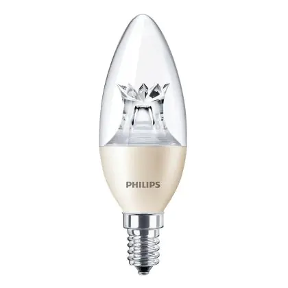 Descrizione Philips MASTER LED Candela Corona Chiara E14 6W 470lm - 822-827 Dim To Warm | Dimmerabile - Sostitutiva 60W